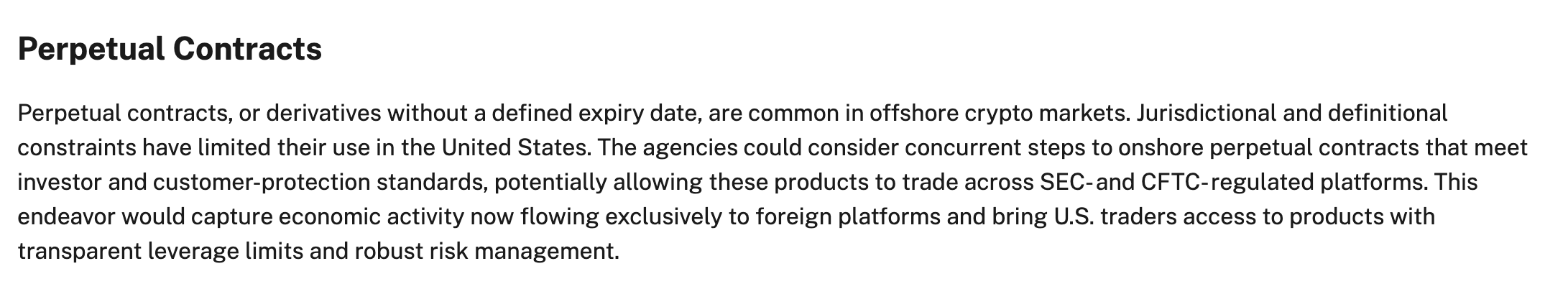 声明明确提出将考虑将永续合约(无固定到期日的衍生品)引入美国市场,使美国交易者能够在本土平台上交易这类目前仅存在于海外加密市场的产品。两机构还将探索24/7全天候市场、预测市场、投资组合保证金优化以及去中心化金融(DeFi)创新豁免等领域。