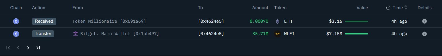 深潮 TechFlow 消息,9 月 12 日,据链上分析师 Onchain Lens 监测,一个新建钱包从 Bitget 提取了 3571 万枚 WLFI 代币,价值约 715 万美元。