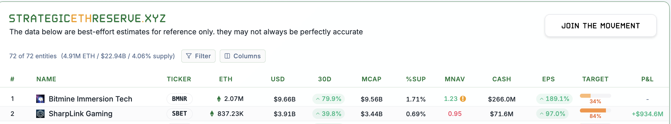 数据:SharpLink 当前的 ETH 持仓浮盈达 9.346 亿美元