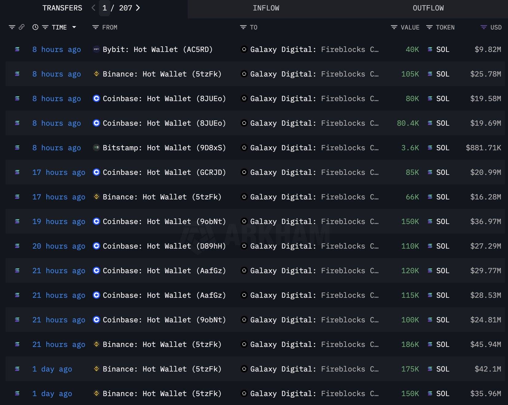 深潮 TechFlow 消息,9 月 15 日,据 Lookonchain 链上分析平台监测,Galaxy Digital 在过去 24 小时内购买了 120 万枚 SOL,价值约 3.06 亿美元。