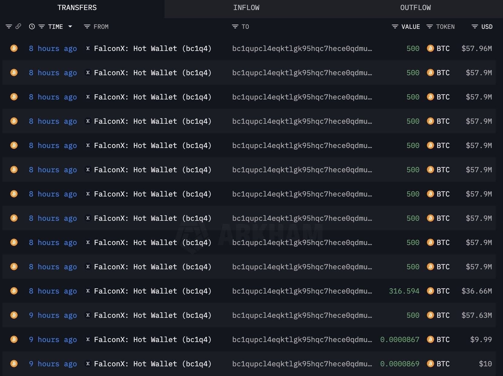 某新建钱包在 8 小时前从 FalconX 接收 5,817 枚比特币,价值约 6.78 亿美元