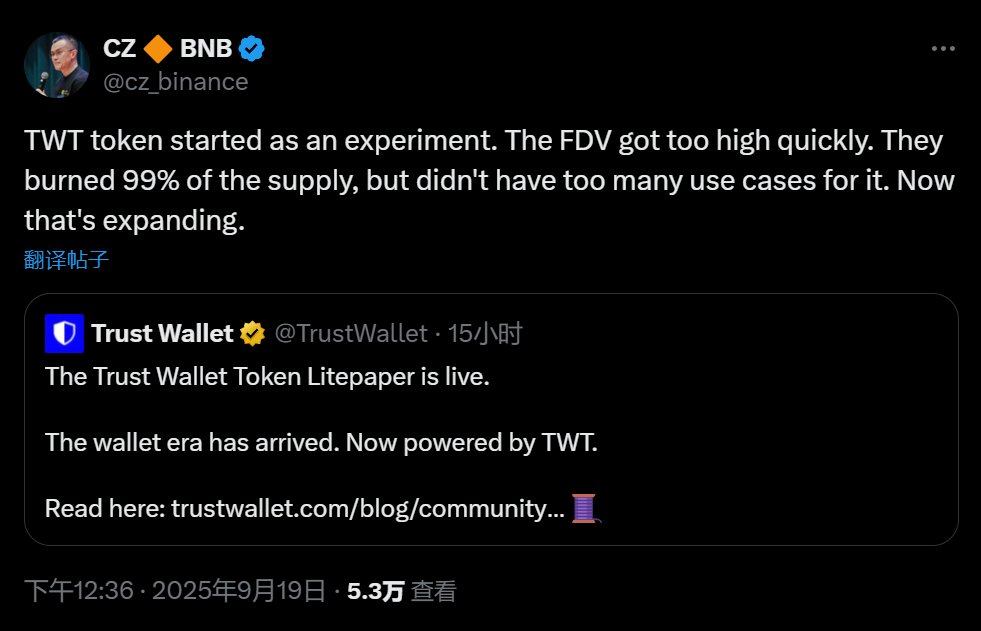 此前消息,CZ 评价 Trust Wallet 更新路线图称,“TWT代币正在扩张用例。”