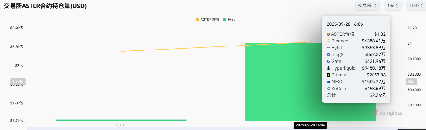 全网ASTER合约持仓突破2亿美元,24H涨幅5622.83%
