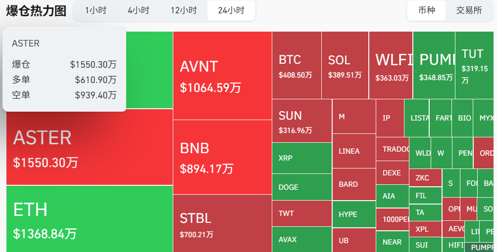 过去24小时ASTER多空爆仓总额突破1500万美元,主爆空单