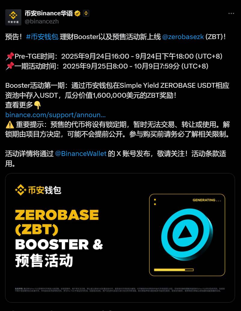 币安钱包理财Booster以及预售活动将上线 ZBT