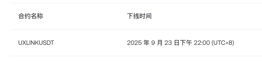 深潮 TechFlow 消息,9 月 23 日,据官方公告,OKX 将下架 UXLINK U 本位永续合约,下架时间为2025 年 9 月 23 日下午 22:00 (UTC+8)