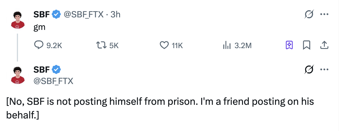SBF的X账号澄清:由朋友代为发声