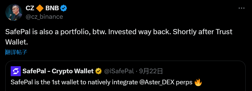 深潮 TechFlow 消息,9 月 24 日,据 CZ 社交媒体披露,加密钱包 SafePal 也是其投资组合项目,他在很早期就进行了投资,时间点紧随对 Trust Wallet 的投资之后。