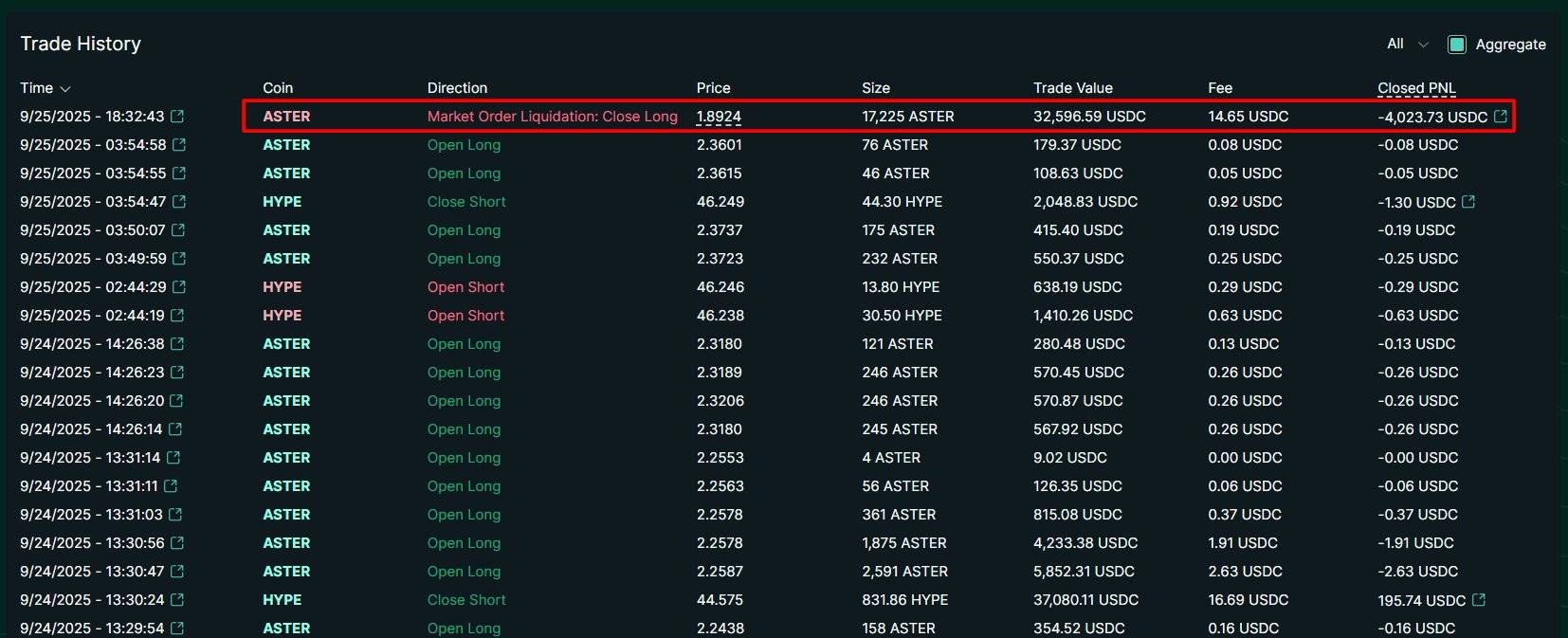 James Wynn 的 3 倍 ASTER 多单被平仓,损失 4023.73 美元
