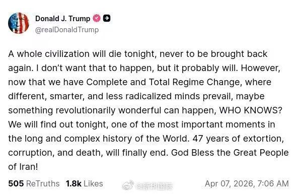 Rạng sáng ngày 8 tháng 4 năm 2026, toàn bộ thị trường tài chính toàn cầu đều nín thở chờ đợi. Khoảng chưa đầy một tiếng rưỡi trước “hạn chót” mà ông Trump đặt ra cho Iran — lúc 20:00 giờ miền Đông Hoa Kỳ ngày 7 tháng 4 — một thông báo từ mạng xã hội cá nhân của ông Trump đã làm chấn động thị trường: “Tôi đồng ý tạm ngừng các hoạt động ném bom và tấn công vào Iran trong hai tuần.”