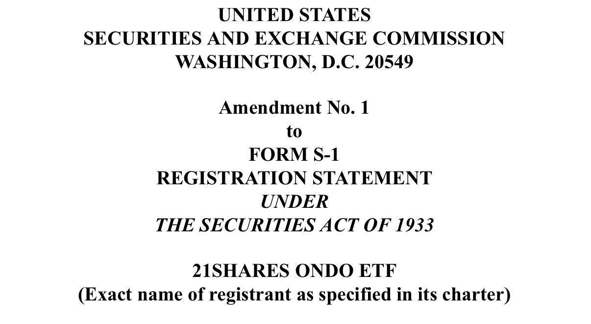 Eric Balchunas, nhà phân tích ETF cấp cao của Bloomberg, đã đăng bài tiết lộ rằng 21Shares đã nộp đơn xin phê duyệt quỹ ETF Ondo.