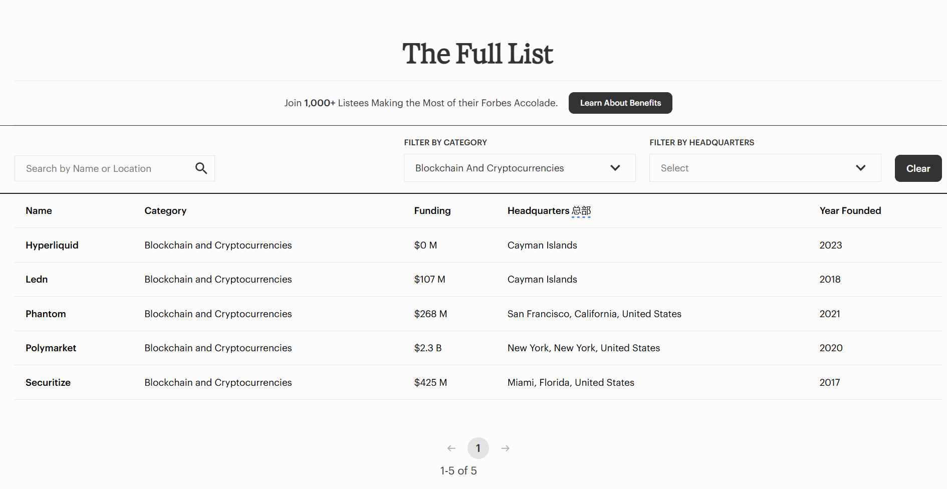TechFlow đưa tin, ngày 20 tháng 2, theo trang web chính thức của tạp chí Forbes, trong danh sách “50 Công ty Fintech Hàng đầu lần thứ 11” vừa được công bố gần đây, các nền tảng sau đã lọt vào danh sách: Polymarket – nền tảng thị trường dự đoán (đã huy động được 2,3 tỷ USD), Securitize – công ty chứng khoán tài sản kỹ thuật số (đã huy động được 425 triệu USD), Phantom – ví tiền mã hóa (đã huy động được 268 triệu USD), Ledn – công ty cho vay tiền mã hóa (đã huy động được 107 triệu USD) và Hyperliquid – sàn giao dịch hợp đồng phi tập trung (chưa huy động được vốn).