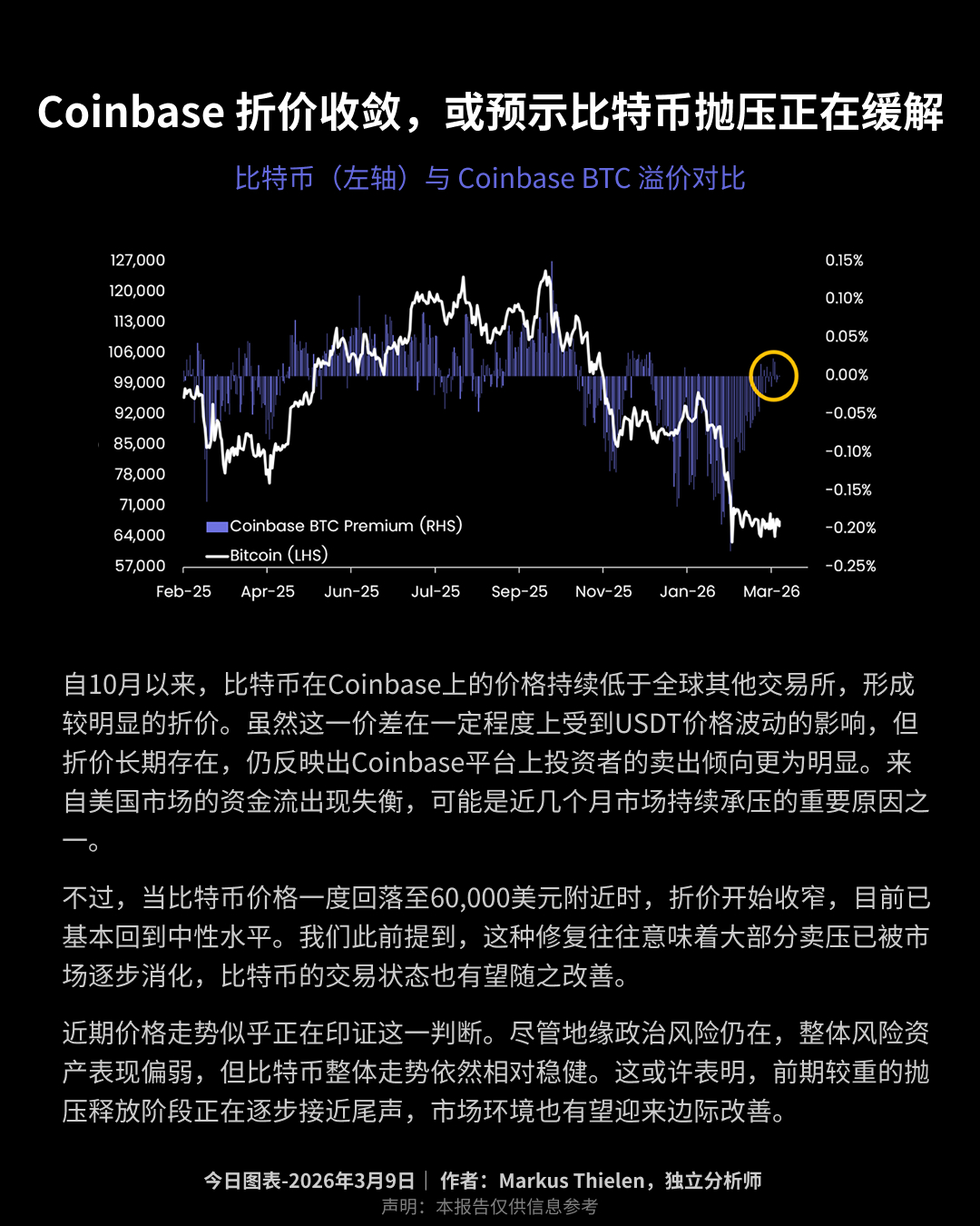 TechFlow đưa tin, ngày 9 tháng 3, Matrixport công bố biểu đồ hôm nay với nhận định: “Kể từ tháng 10, giá bitcoin trên sàn giao dịch Coinbase liên tục thấp hơn mức giá tại các sàn khác trên toàn cầu, tạo thành mức chiết khấu khá rõ rệt. Mặc dù chênh lệch giá này phần nào bị ảnh hưởng bởi biến động giá USDT, nhưng việc chiết khấu tồn tại trong thời gian dài vẫn phản ánh xu hướng bán mạnh hơn của nhà đầu tư trên nền tảng Coinbase. Dòng vốn từ thị trường Mỹ đang mất cân bằng, có thể là một trong những nguyên nhân quan trọng khiến thị trường liên tục chịu áp lực trong vài tháng gần đây.