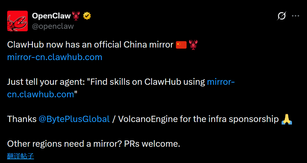 TechFlow đưa tin, ngày 1 tháng 4, theo thông báo chính thức, nền tảng kho kỹ năng AI ClawHub thuộc OpenClaw vừa chính thức ra mắt trang web gương tại Trung Quốc với tên miền mirror-cn.clawhub.com. Cơ sở hạ tầng lần này được tài trợ bởi BytePlus – công ty con của ByteDance.