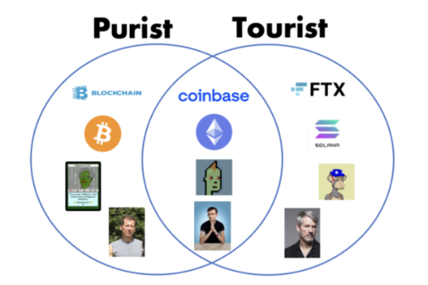 以下是我从加密公司、加密货币、NFT 和创始人的角度来看待目前的纯粹主义者、观光客以及两者的交叉点:
