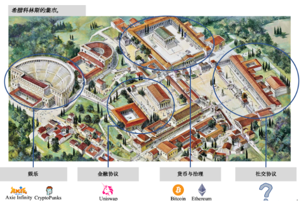 过去几十年里,互联网是一片新大陆,而这些巨头像是东印度公司,到了新大陆一看到处都是数字农奴,他们可以为所欲为。Web3 使我们有能力在赛博空间重燃雅典荣光:一个拥有货币(Bitcoin)、治理系统(Ethereum)、金融系统 (DeFi)、娱乐系统(GameFi/NFT)、协议化的公民广场(Social Protocol)的自由市场;我们已经在货币、治理系统、金融系统、和娱乐系统中看到了大量的成功案例,而公民广场作为不可或缺的一部分,必将在未来带来波澜壮阔的演进和发展。
