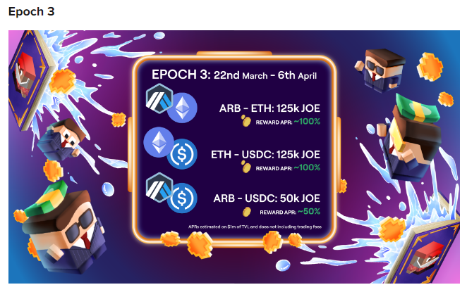 Trader Joe 在 ARB 空投后的一周(Epoch3),为 ARB 的 LB 做市 LP 提供了 17.5 万个 JOE 代币奖励