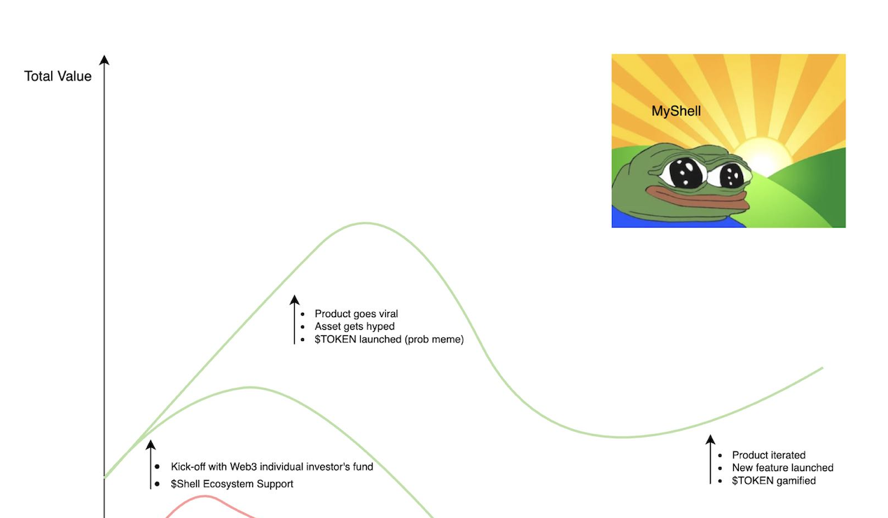现在,设想一个提供大多数开源模型和主流闭源模型,能让开发者快速上手制作和deliver产品的平台;同时拥有原生货币和大量个人投资者,能在产品初期就进行资金支持;且在一定概率产品爆火后能得到来自24/7金融市场的流动性注入和炒作- 这样的创新创业产品启动平台,正是MyShell将扮演的角色。