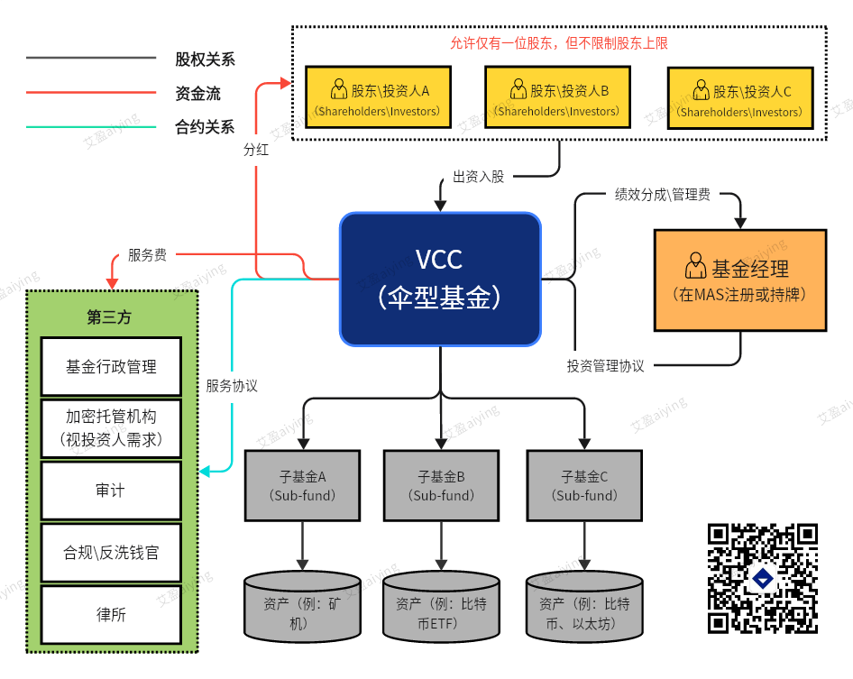 2、其次,基金也可以采取传统的私募基金结构,由一家经新加坡金融管理局(MAS)登记或授权的基金管理人来创建,采用新加坡可变资本公司的组织形式(VCC)