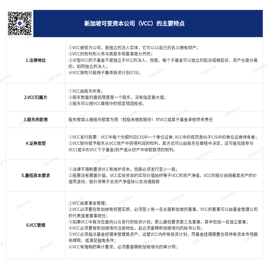 三、新加坡可变资本公司(VCC)的主要特点