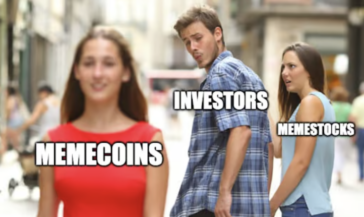 我不知道该如何解释这一点。我猜是因为 Meme stocks 得到了美国证券交易委员会的批准并在纽约证券交易所和纳斯达克上市,具有合法性(相对而言),而 Memecoin 则没有?