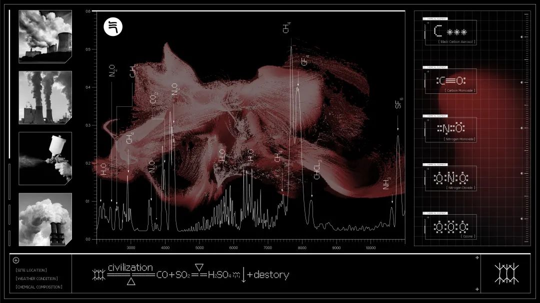 同时,作为建筑师和策展人,我一直都在关注生态议题。我曾在中央美院的危机与生态设计专业开设了「后碳未来」这门课程,以碳为出发点,重新思考设计的维度和方法。我也作为策展人落地了深圳的设计互联的展览《振动的云层》,讨论了自然和基础设施交织而成的大气建筑,当工业生产将大量颗粒物送入天空,大气也就从自然变成人工的产物。