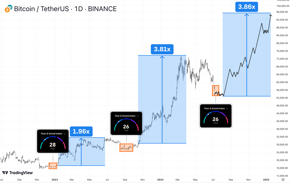 随着加密市场暴跌,恐惧与贪婪指数目前为 26,几乎创一年以来新低。上一次处于这一水平时,SOL 还在 11 美元。以往在 2023 年 1 月、2023 年 9 月、2022 年 7 月,该指数也出现过如此之低,随后市场开启上涨行情。所有人都说要在「在贪婪时卖出,在恐惧时买入」,但实际上只有 1% 的人这么做。