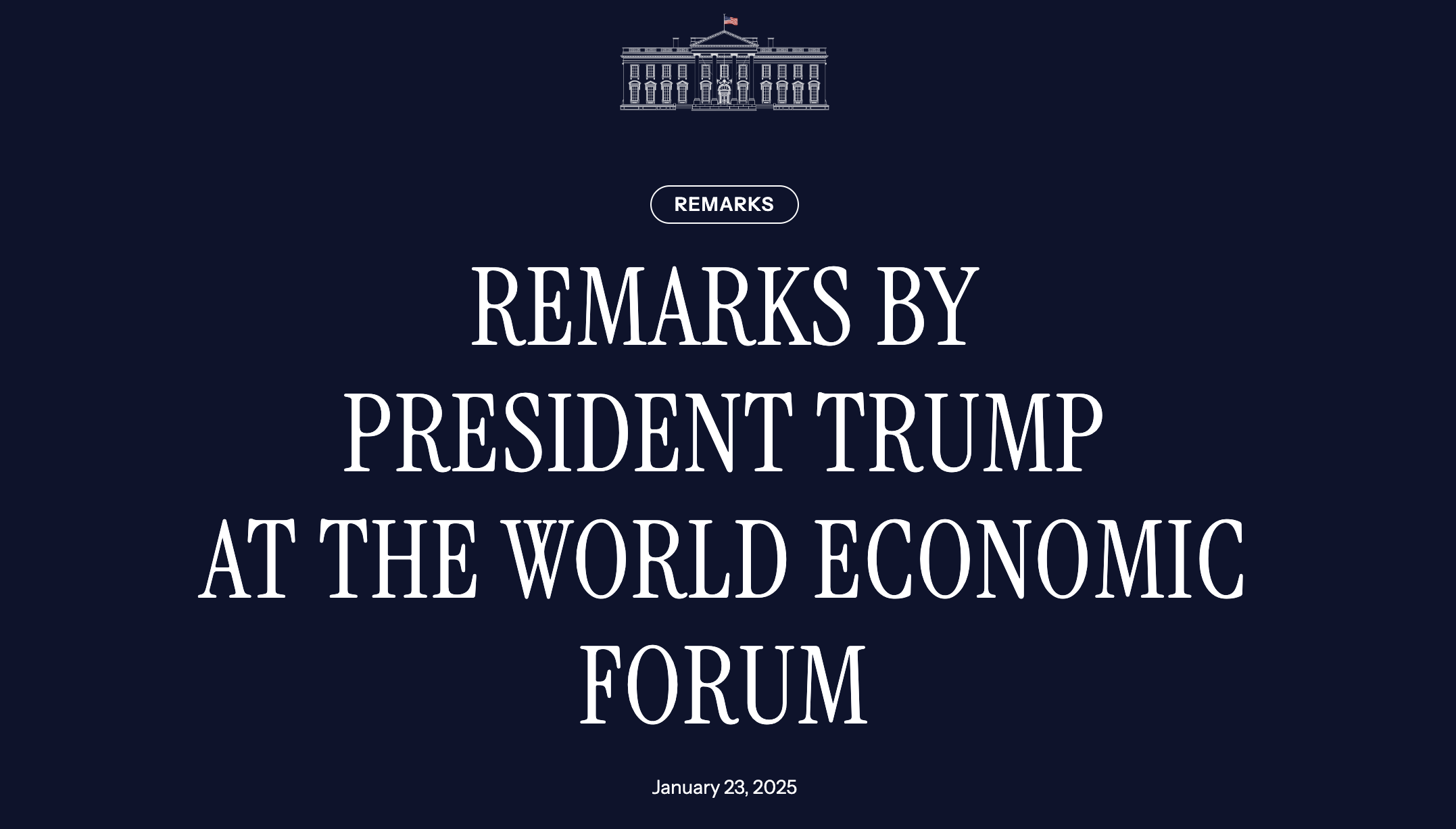 特朗普世界经济论坛演讲全文:美国将成人工智能及加密货币的世界中心