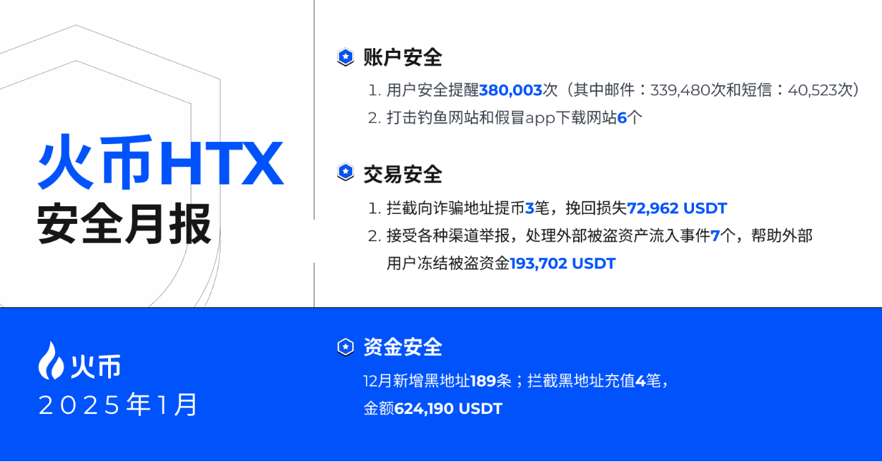 1月期间,火币HTX通过多种形式累计向用户发送380,003次安全提醒,帮助用户快速识别并应对潜在风险。