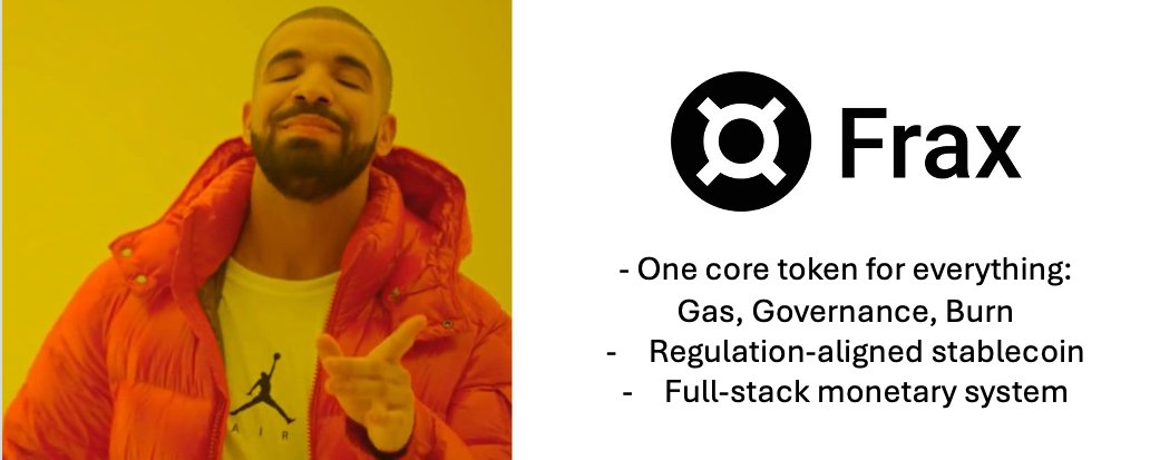 FRAX 已不再是记忆中 2022 年那种「半吊子」(半支持半不支持)的算法稳定币。它已演变成一个围绕监管明确性、机构协同和垂直整合构建的全栈式货币系统。创始人在华盛顿特区协助政策制定者。该稳定币由美国国债支持,并由机构托管。代币正在获得真正的实用性——用作 Gas、治理、销毁机制等等。