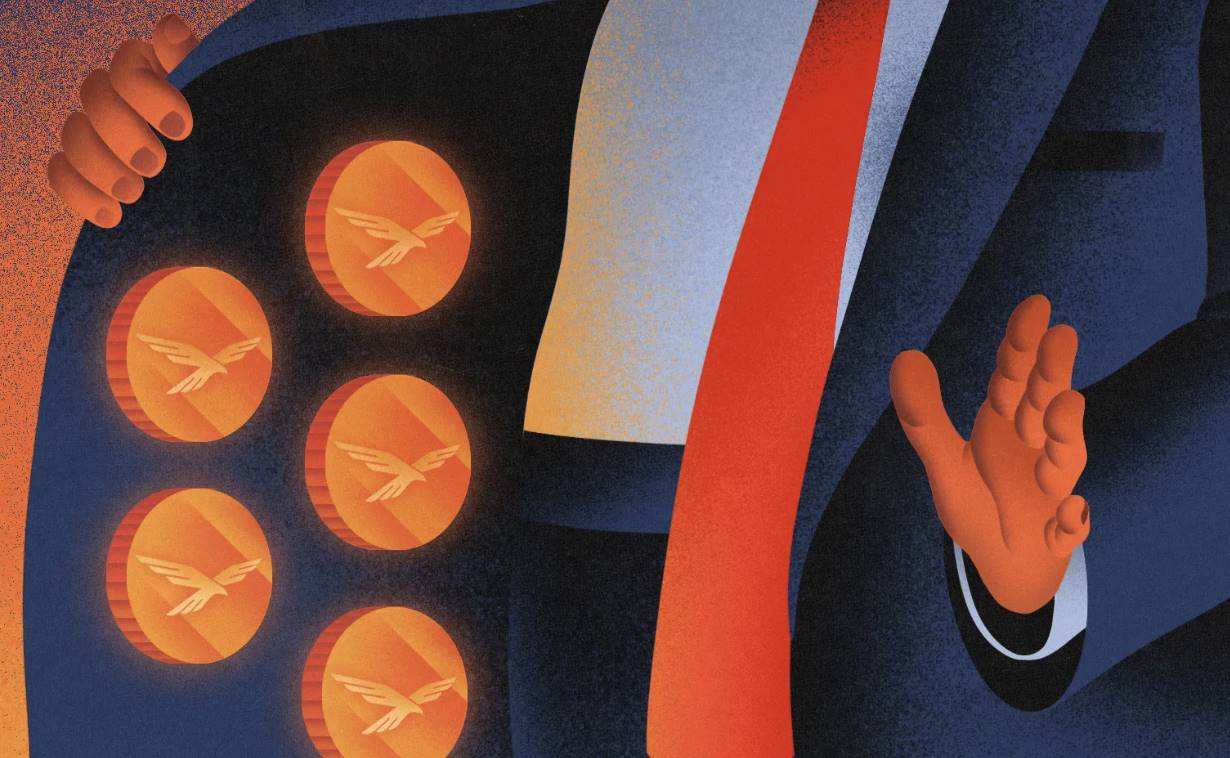 在其就职典礼前三天,他还推出了一种所谓的迷因币,这种加密货币基于网络知名度,早期买家以更高价格将其卖给后期买家,实质上是一种金字塔骗局。特朗普迷因币 ($TRUMP ) 由十亿枚硬币组成,其中 80% 由特朗普相关公司持有,其余部分出售给公众。据报道,其销售获得了约 3.5 亿美元的收入,市值接近 30 亿美元;值得注意的是,特朗普的商业机构从每一笔特朗普迷因币交易中赚取手续费。