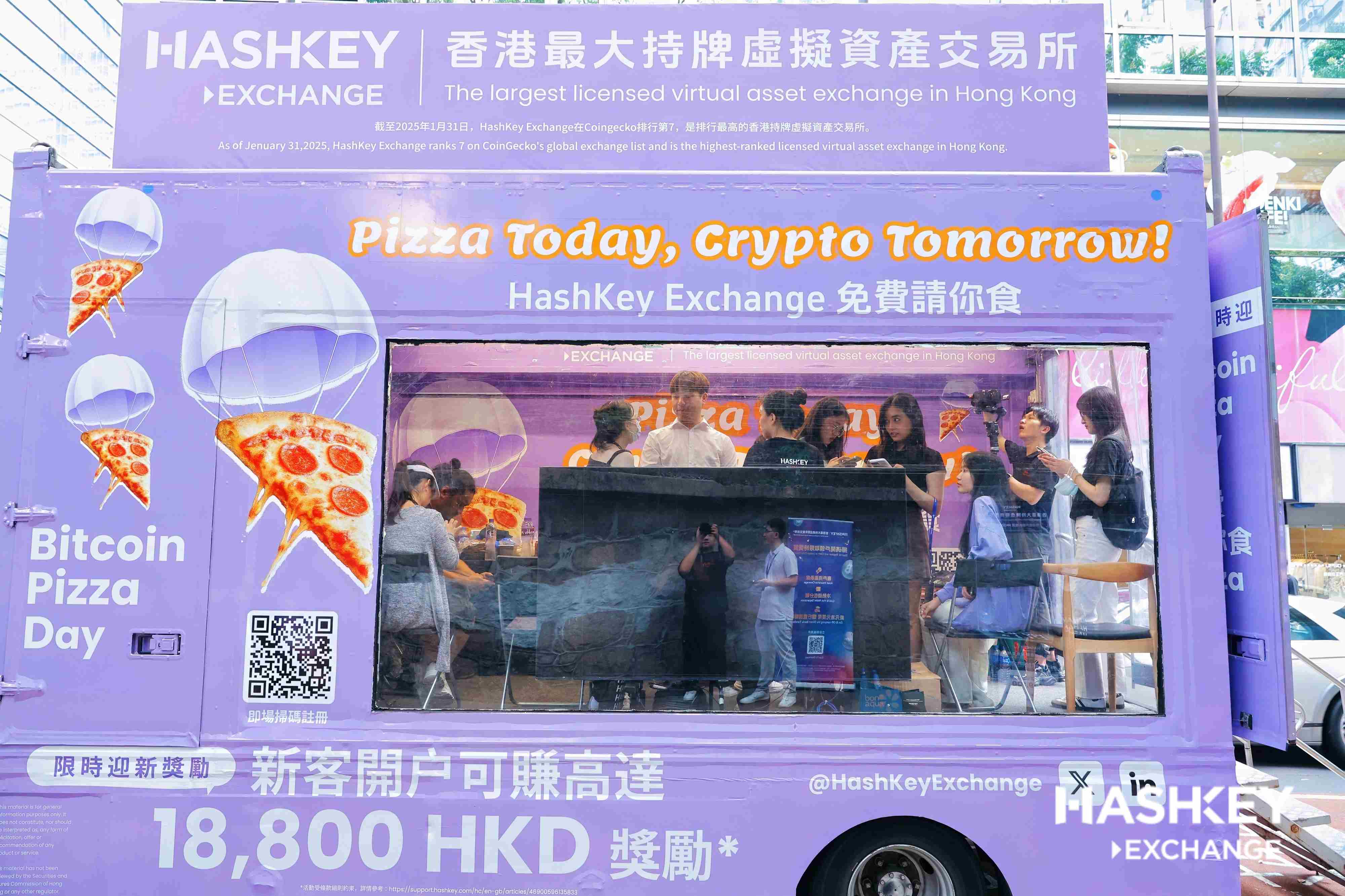 HashKey Exchange举办"比特币披萨日"庆祝活动,免费披萨车亮相香港街头