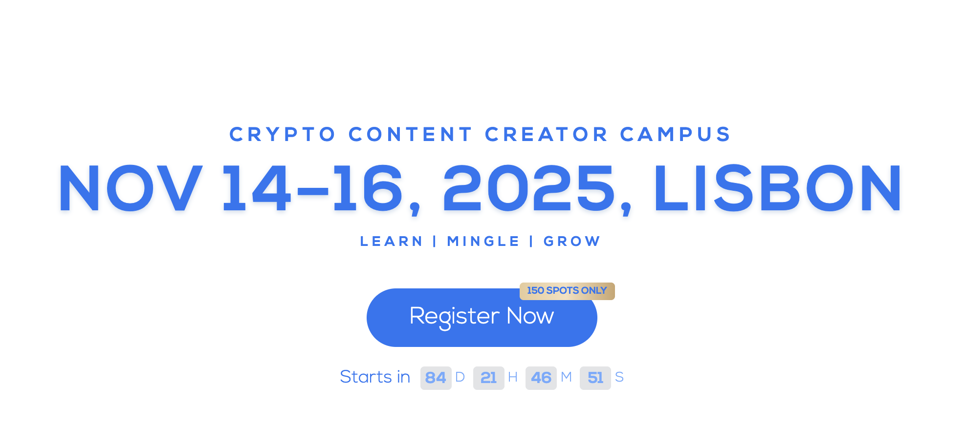 加密内容创作者校园(Crypto Content Creator Campus,简称 CCCC)里斯本2025大会即将迎来史上最耀眼的一届。11月14日至16日,这座欧洲新兴的区块链之都将汇聚一众正在重塑内容叙事和影响力的全球意见领袖,包括 Nuseir Yassin、Nick Tran、Philippe Ben Mohamed 和 Sergej Loiter。