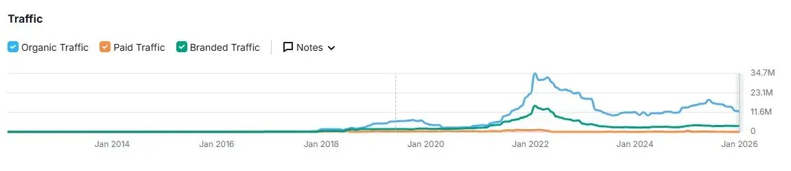 从 Binance、Coinbase 等几家头部 CEX 的站点流量可以看到:自 2021 年牛市峰值以来,整体访问量持续下行,即便 BTC 创出新高也未显著恢复。 与隔壁 Robinhood 的火爆形成鲜明对比。 更多可以阅读我们去年写的“Where are the marginal buyers" 。