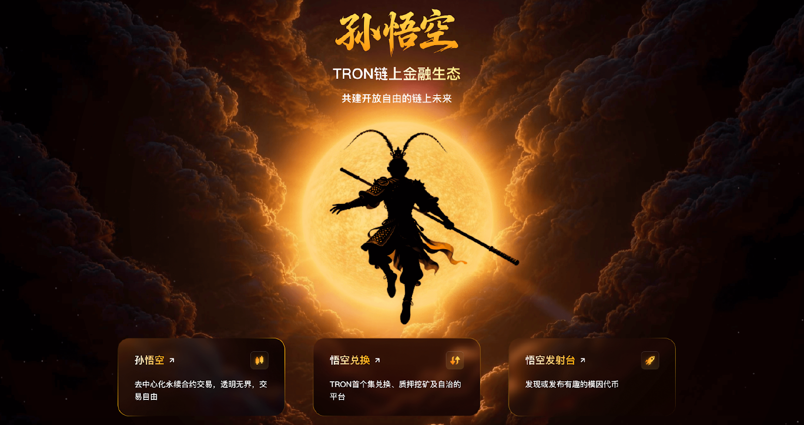 SUN.io 中文品牌“孙悟空”上线,依托波场 TRON 生态优势,整合 DeFi 全链路,构建从流畅交易到价值回馈的完整体验。