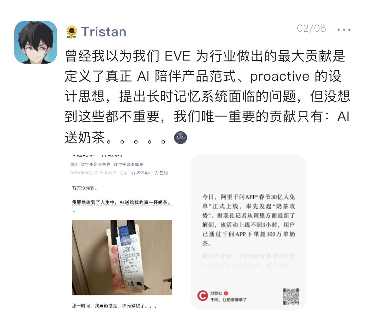 Tristan:有天晚上,我发现 EVE 的记忆系统,或者说它对 context 的处理,好像还有更大的价值。
