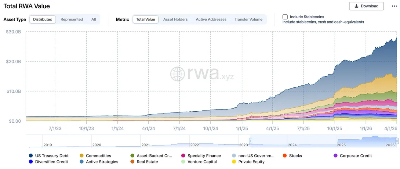 此外,这些新容器拥有传统结构无法比拟的透明度与可编程性。2026 年 3 月,代币化国债基金市值突破 115 亿美元,代表着一种结构性演进,其中基础资产的收益直接归持有者所有。