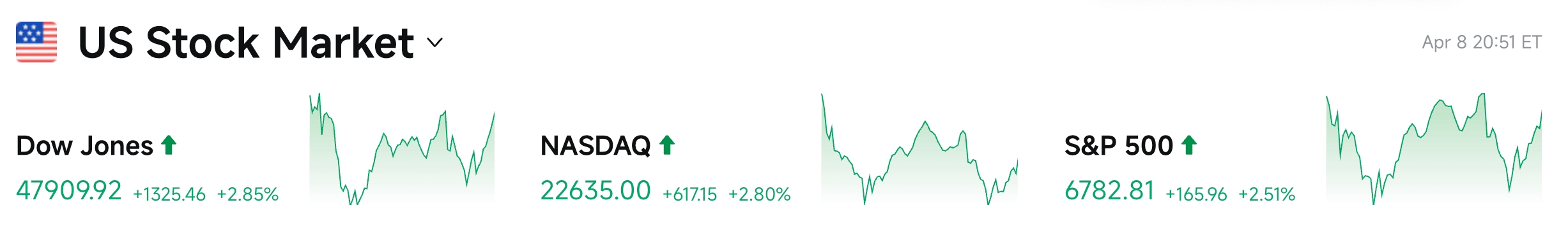 - 道指:涨2.85%报47909.92点,连续走势受 ceasefire 消息驱动高开高走。