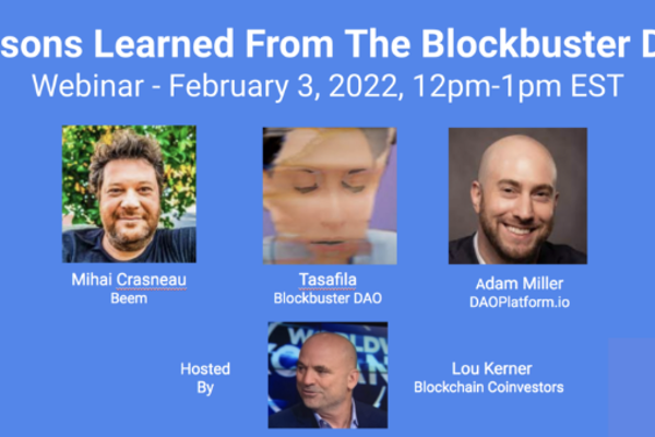 2月3日,一场关于 Blockbuster DAO 和其他DAO 的网络研讨会召开,主要有: BlockbusterDAO的创始人Tasafila(化名) 、Beem的首席执行官Mihai Crasneanu和 DAOPlatform.io的创始人Adam Miller。