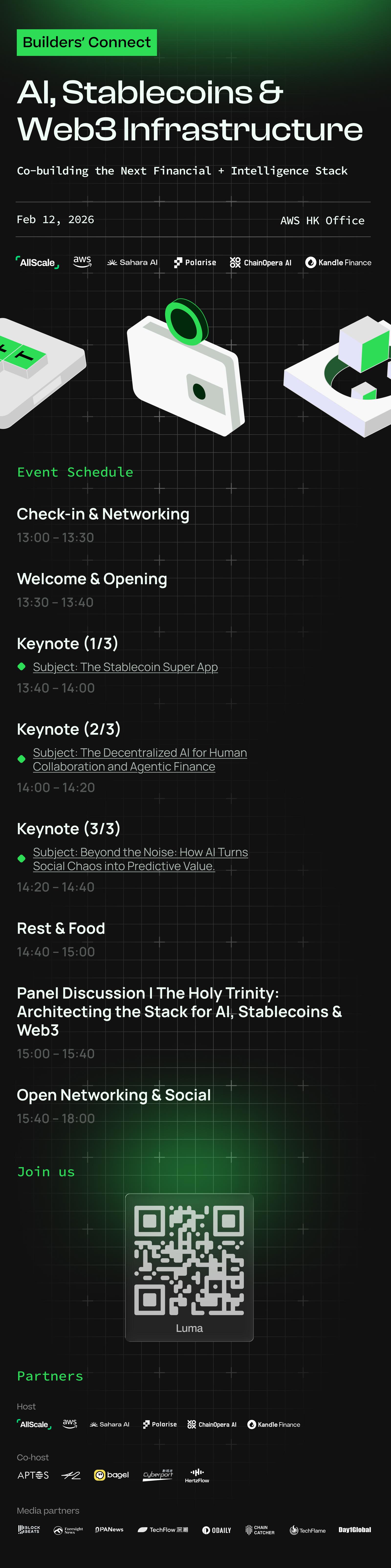 香港地处全球金融、新兴 Web3 监管和快速发展的 AI 应用的交汇点,使其成为探索 AI + 稳定币 + Web3 基础设施如何为下一代金融和智能系统提供动力的建设者的理想之地。