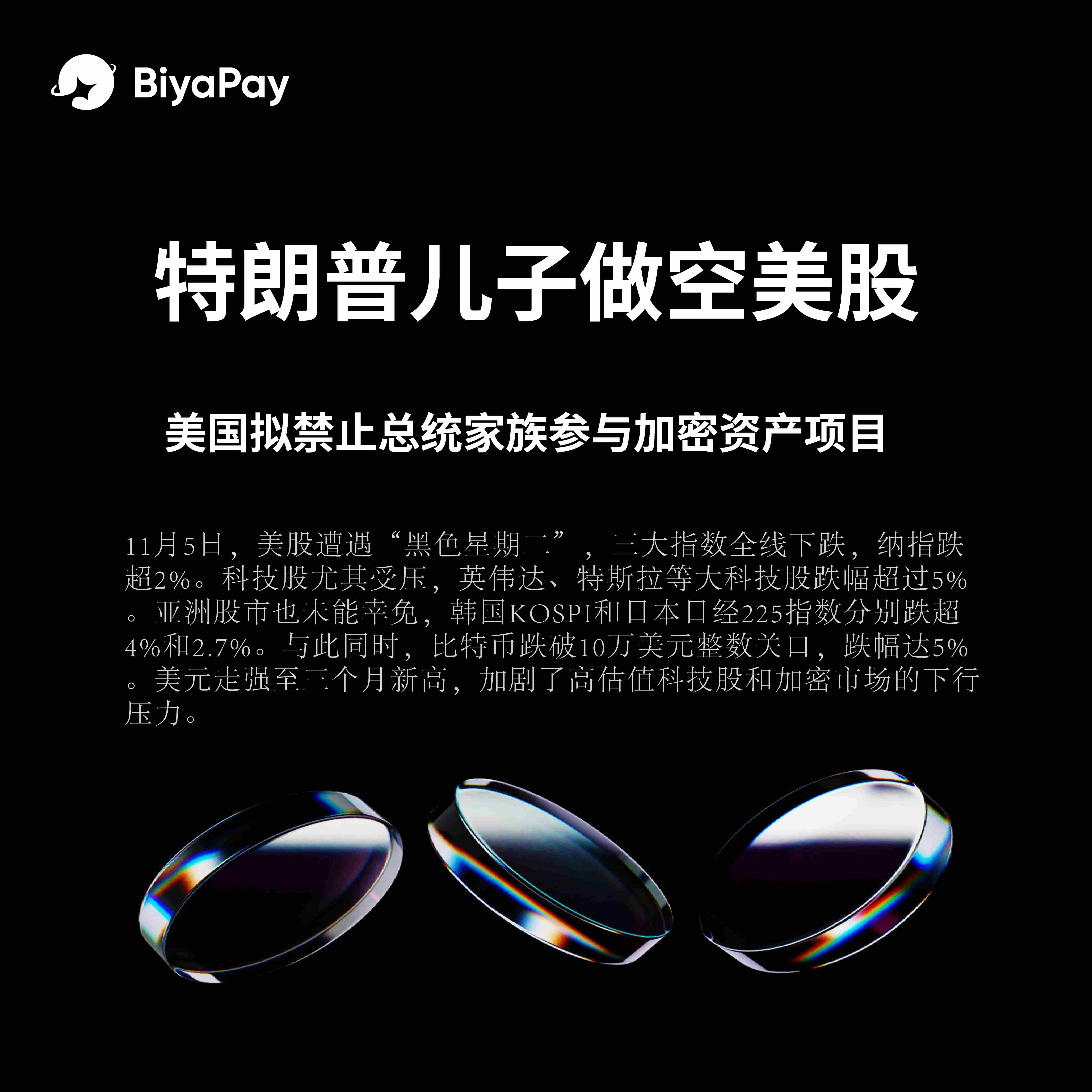 深潮 TechFlow 消息,11 月 5 日,特朗普儿子首次买入1090万美元看跌期权,目标价格570美元,意在看空纳斯达克100指数。与此同时,美国国会提出新法案,计划禁止公职人员通过职务关系参与加密资产项目,特别是总统及其家族。这一举措可能加剧市场不确定性,尤其是在加密货币和科技股领域。BiyaPay分析师表示,这将影响市场信心,并可能引发资金流动变化。