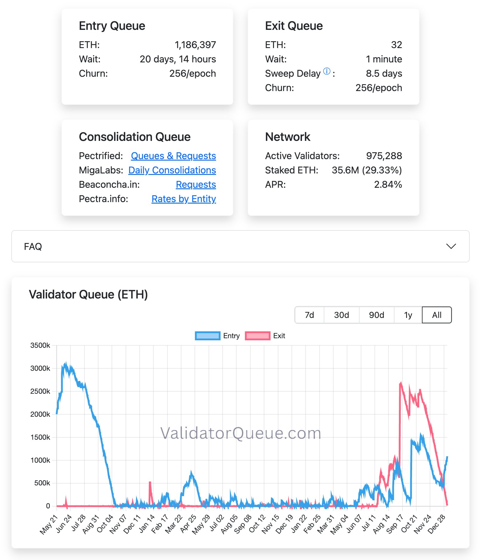 深潮 TechFlow 消息,1 月 6 日,据链上分析师余烬(@EmberCN)监测,以太坊 PoS 质押退出队列已完全清空,同时,受 Bitmine 近 10 天内存入 76.8 万枚 ETH 的影响,排队进入质押的 ETH 数量超 118.6 万枚。这表明当前以太坊质押系统呈现入队量大幅超过退出需求的状态。