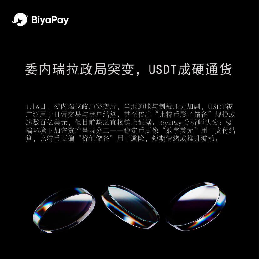委内瑞拉政局突变后,当地通胀与制裁压力加剧,USDT 被广泛用于日常交易与商户结算,甚至传出“比特币影子储备”规模或达数百亿美元,但目前缺乏直接链上证据。BiyaPay 分析师认为:极端环境下加密资产呈现分工——稳定币更像“数字美元”用于支付结算,比特币更偏“价值储备”用于避险,短期情绪或推升波动。BiyaPay 支持数字货币现货/合约及多资产交易,用户可在波动中灵活调整仓位与风险敞口。
