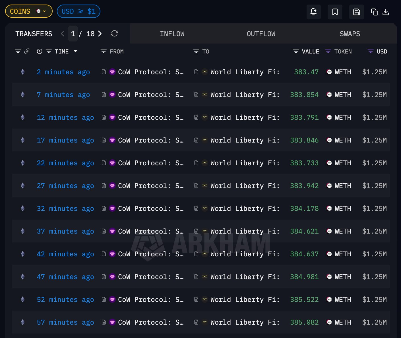 深潮 TechFlow 消息,1 月 7 日,据链上分析师 Ai姨(@ai_9684xtpa)监测,WLFI Strategic Reserve 地址已将从 Aave 取出 1507 万美元的 WBTC 全部换仓为 WETH。
