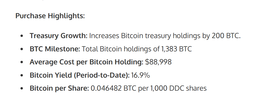 深潮 TechFlow 消息,10 月 16 日,据官方公告,DDC Enterprise 宣布已增持 200 枚 BTC,截至目前该公司的比特币总持仓达 1383 枚。