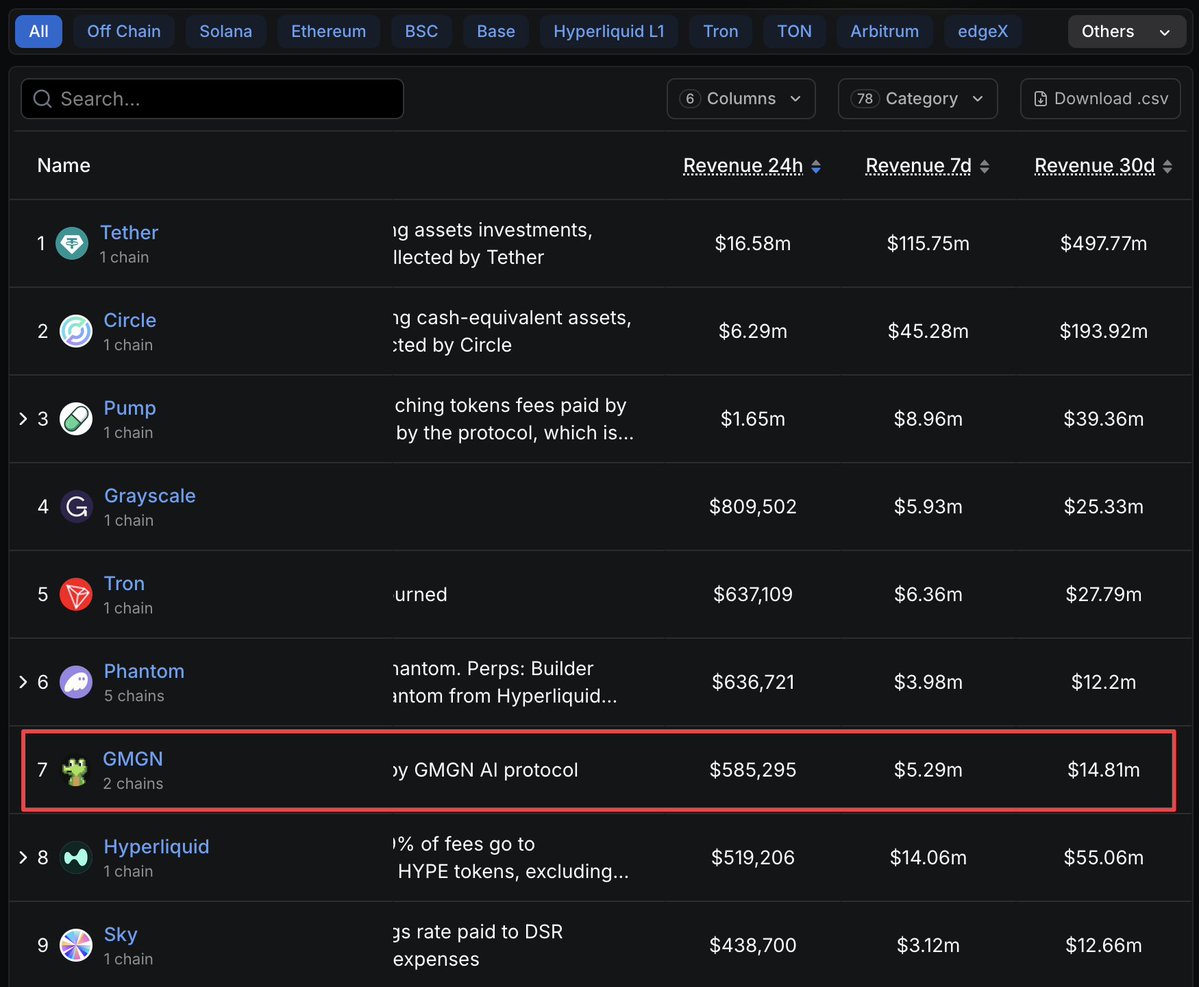 深潮 TechFlow 消息,01 月 26 日,X 平台加密 KOL Yishi(@ohyishi)在 1 月 25 日发布推文表示,GMGN 过去 24 小时收入 585,295 美元,超过 Hyperliquid。与此同时,过去 30 天 GMGN 创造了 1481 万美元的收入,展现出强劲盈利能力。