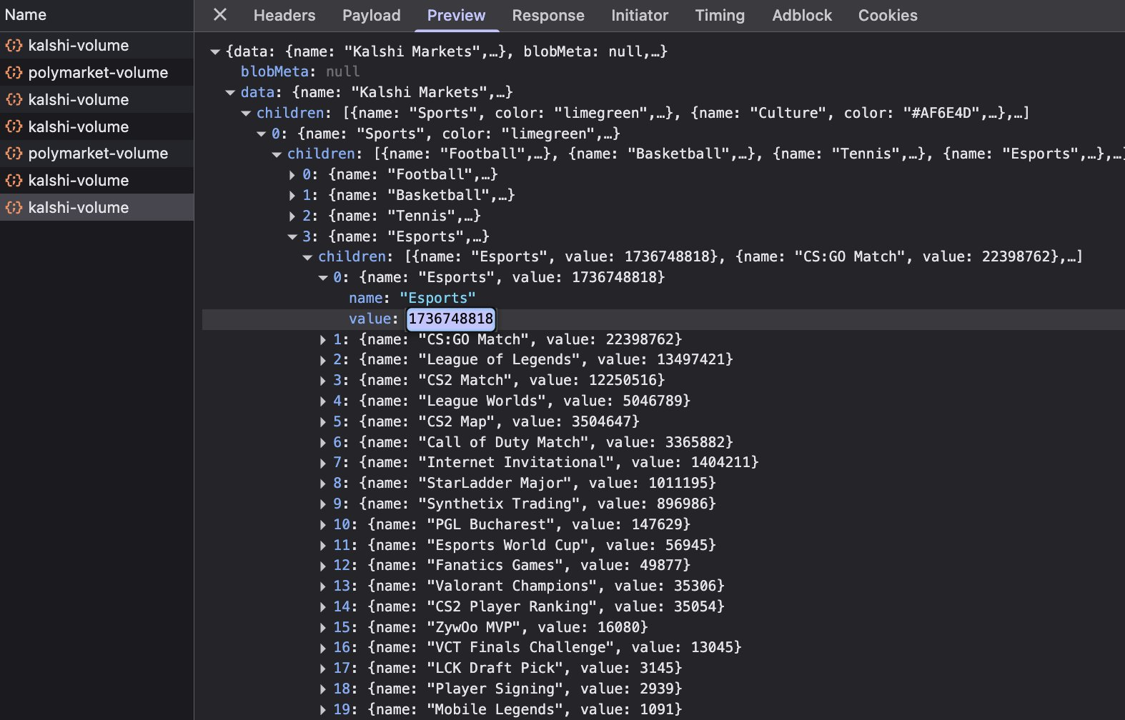 深潮 TechFlow 消息,2 月 5 日,预测市场平台 Polymarket 团队成员 shampoo 在社交媒体发文指控竞争对手 Kalshi 通过数据造假夸大其电竞板块的交易量。shampoo 表示,该平台通过添加一个泛化的"电竞"类别去人为增加了约 17 亿美元的交易量,而实际数据显示其电竞交易量仅约 6300 万美元,不到 Polymarket 电竞交易量的 10%。此外,Kalshi 还将 CS 市场同时称为 CS:GO 和 CS2 进行重复计算。
