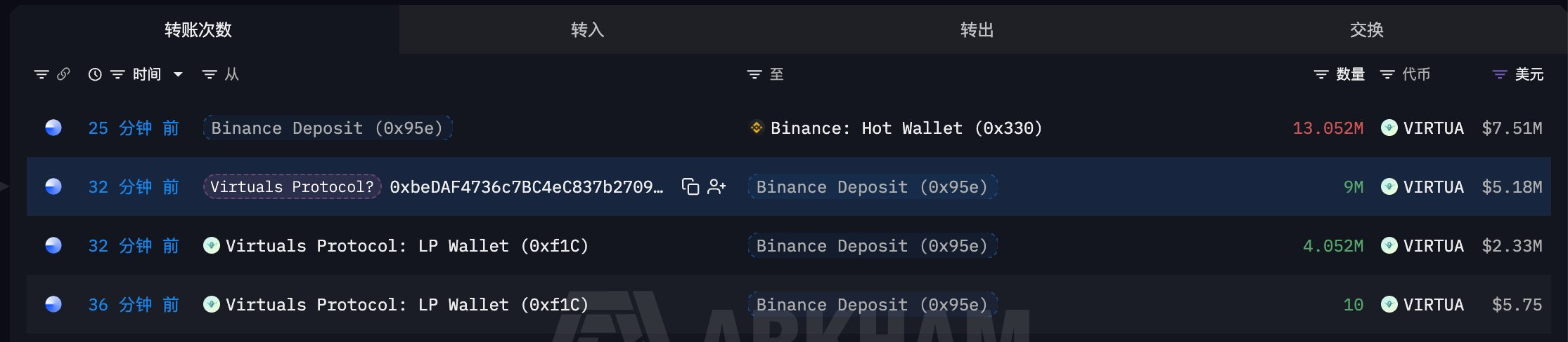 据链上分析师余烬(@EmberCN)监测,Virtuals Protocol 项目方钱包于半小时前将 1305 万枚 VIRTUAL(价值约 751 万美元)转入币安交易所。
