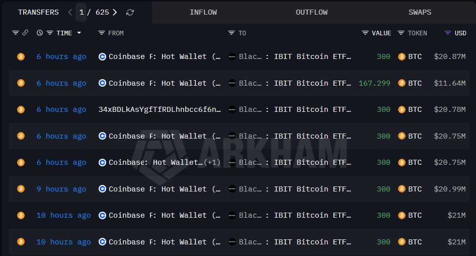 深潮 TechFlow 消息,3 月 25 日,据链上数据分析平台 Onchain Lens(@OnchainLens)监测,贝莱德(BlackRock)在过去 10 小时内从 Coinbase 提取 2,267 枚 BTC,价值约 1.578 亿美元。