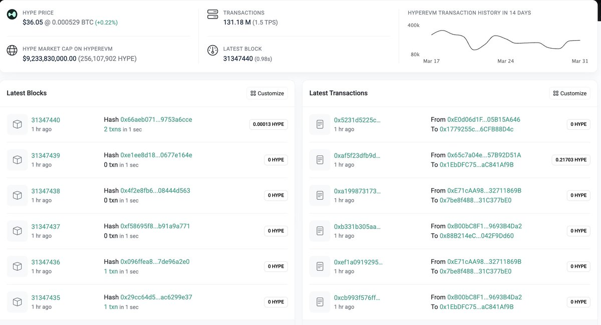 深潮 TechFlow 消息,04 月 02 日,据链上安全机构 PeckShield(@PeckShieldAlert)监测,HyperEVM 疑似正在经历重大故障(major outage),依据为区块浏览器页面显示最新区块与交易均停留在"1 小时前",部分区块显示零交易,链上数据疑似停止更新。